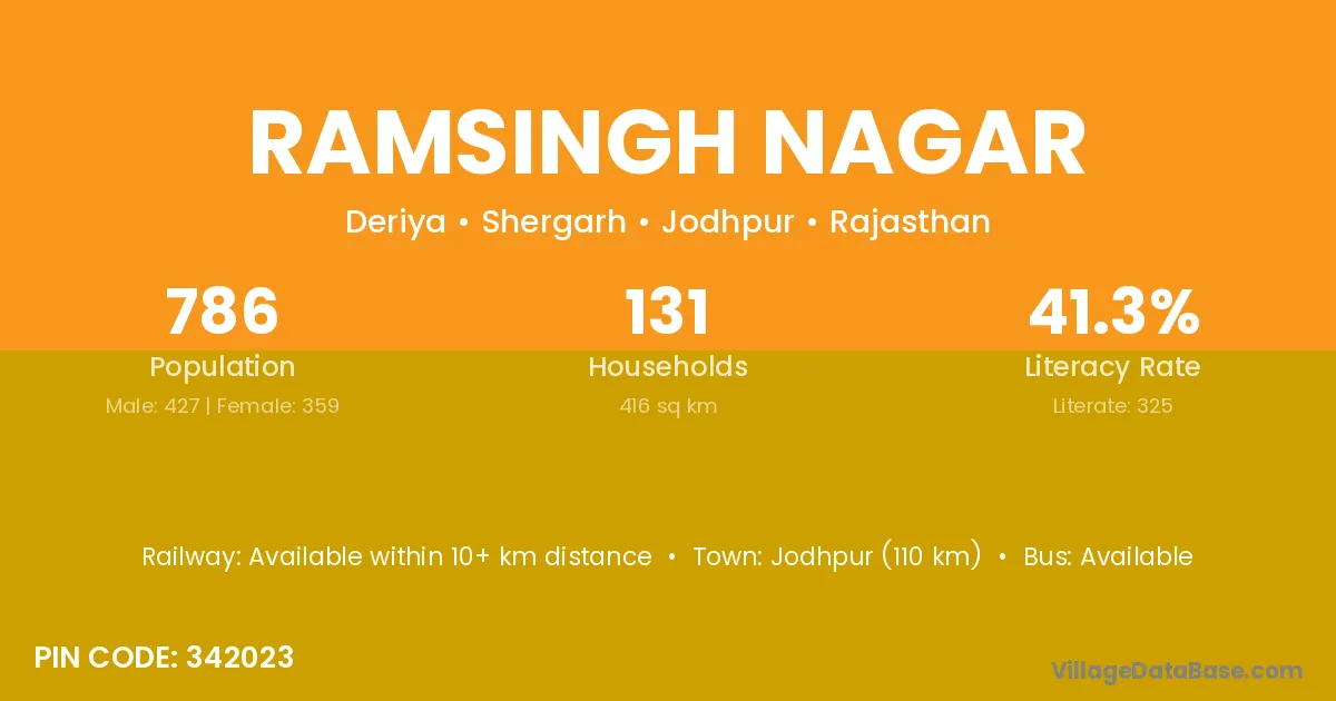 According to Census 2011 information, the village code of Ramsingh Nagar village is 342023.