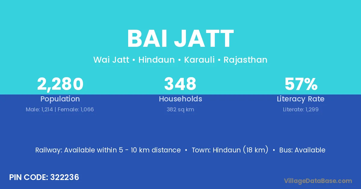 Hindaun (18 km) is the nearest town to Bai Jatt village for major economic activities and is located approximately 18 km away.
