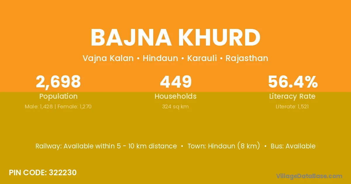 Hindaun (8 km) is the nearest town to Bajna Khurd village for major economic activities and is located approximately 8 km away.