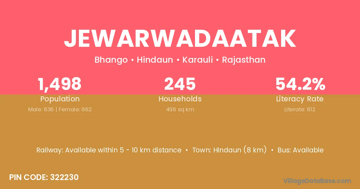 Hindaun (8 km) is the nearest town to Jewarwadaatak village for major economic activities and is located approximately 8 km away.