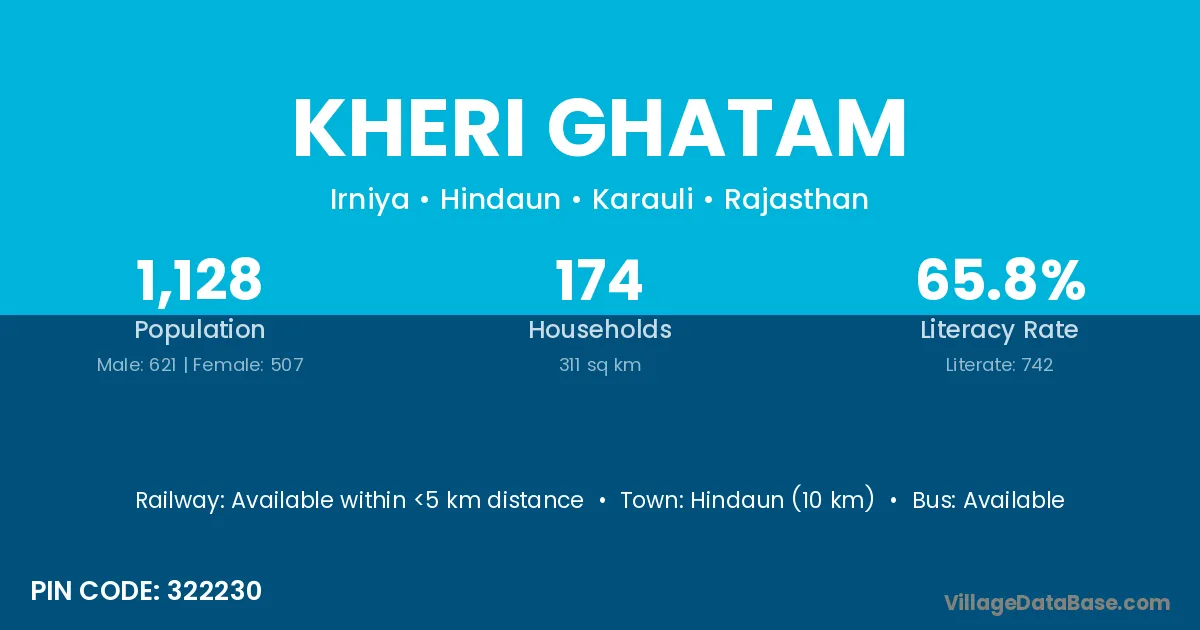 Hindaun (10 km) is the nearest town to Kheri Ghatam village for major economic activities and is located approximately 10 km away.