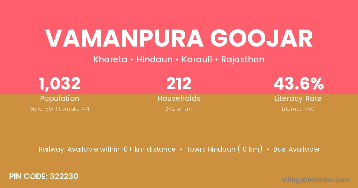 Vamanpura Goojar village has a total population of 1,032 people, of which 561 are males and 471 are females.