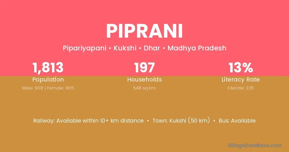 According to Census 2011 information, the village code of Piprani village is 322242.