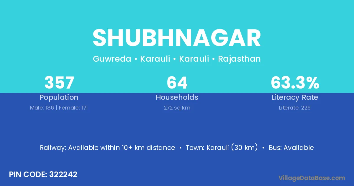 Karauli (30 km) is the nearest town to Shubhnagar village for major economic activities and is located approximately 30 km away.