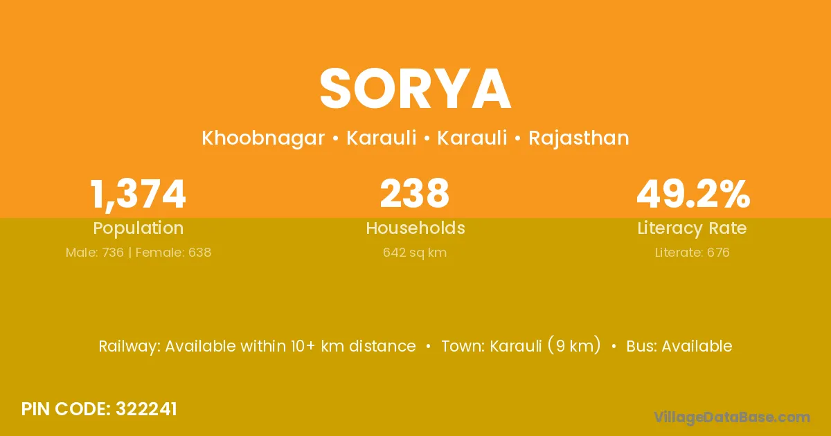 Karauli (9 km) is the nearest town to Sorya village for major economic activities and is located approximately 9 km away.