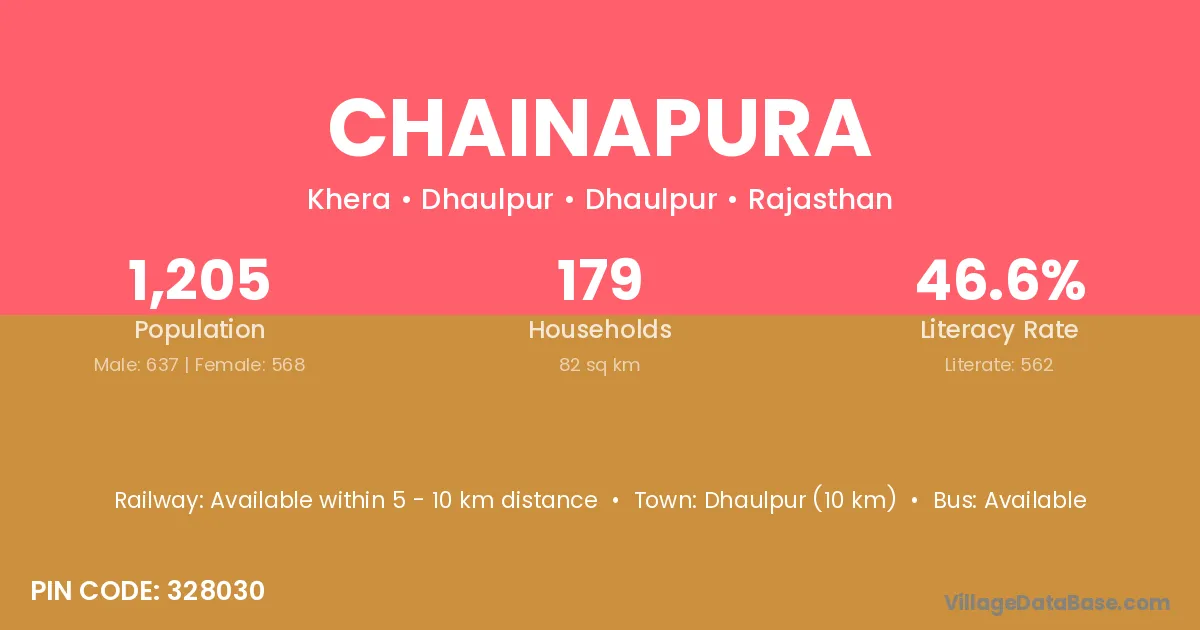 Karauli (32 km) is the nearest town to Chainapura village for major economic activities and is located approximately 32 km away.