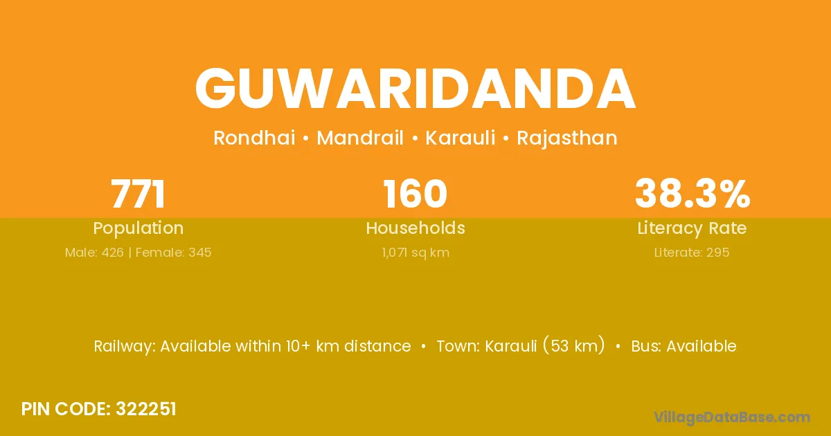 Karauli (53 km) is the nearest town to Guwaridanda village for major economic activities and is located approximately 53 km away.