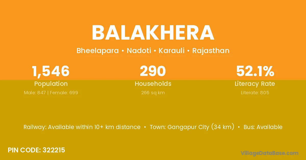 Gangapur City (34 km) is the nearest town to Balakhera village for major economic activities and is located approximately 34 km away.
