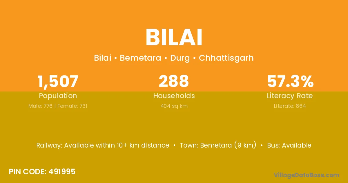 The literacy rate of Bilai village is 52.85%. Male literacy stands at 62.16% and female literacy at 41.70%.