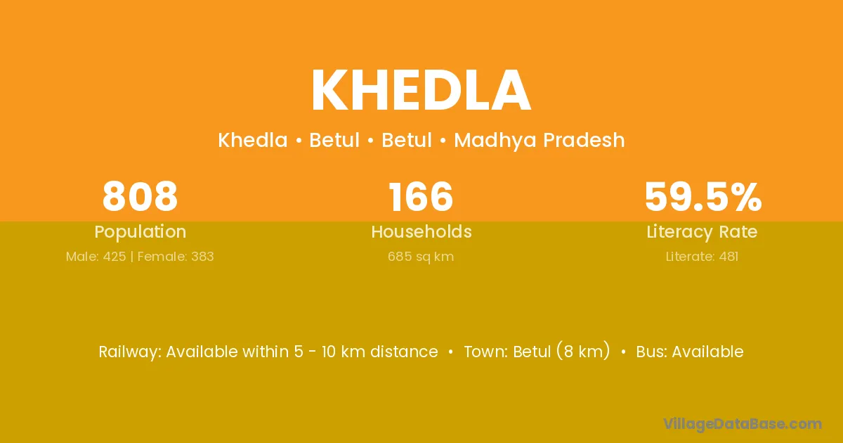 Khedla village has a total population of 1,546 people, of which 808 are males and 738 are females.