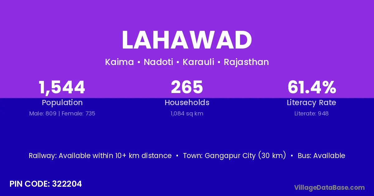 According to Census 2011 information, the village code of Lahawad village is 322204.