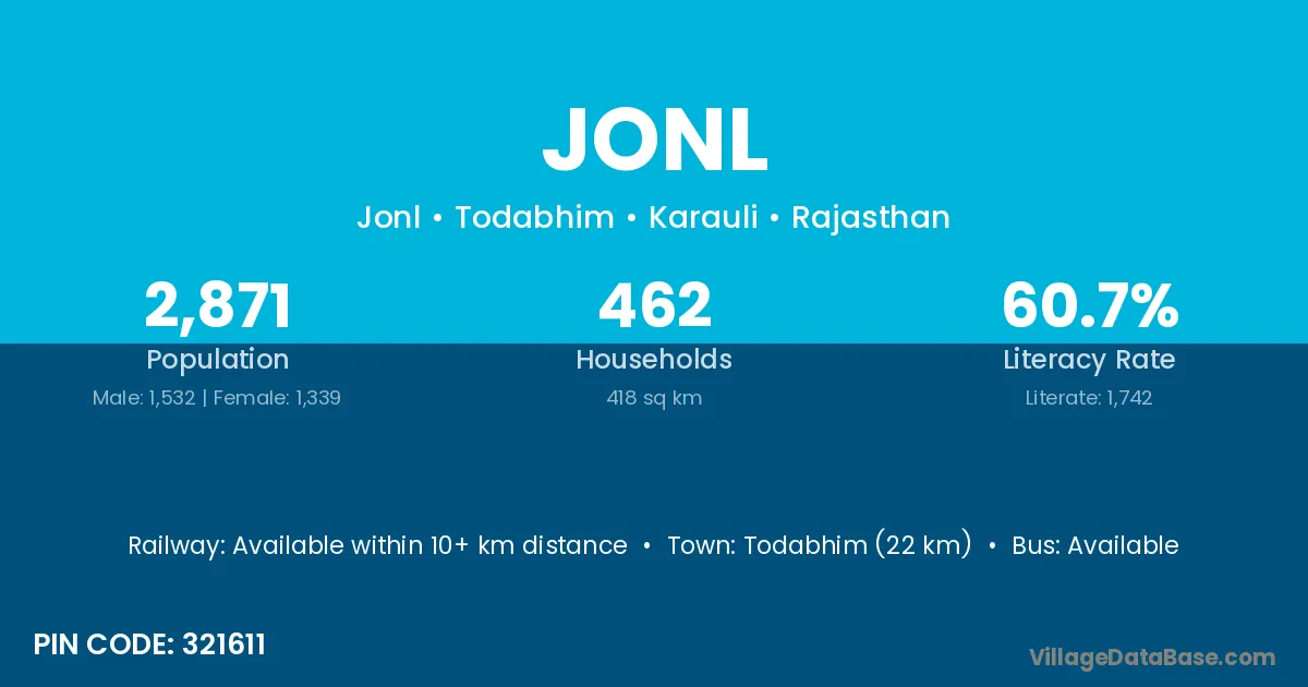 According to Census 2011 information, the village code of Jonl village is 321611.