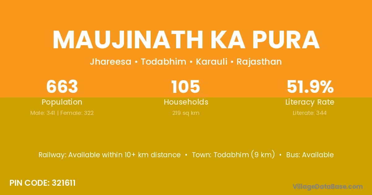 Todabhim (9 km) is the nearest town to Maujinath Ka Pura village for major economic activities and is located approximately 9 km away.