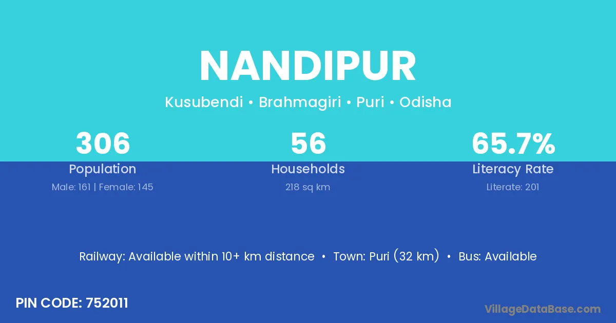 Nandipur village has a total population of 213 people, of which 106 are males and 107 are females.