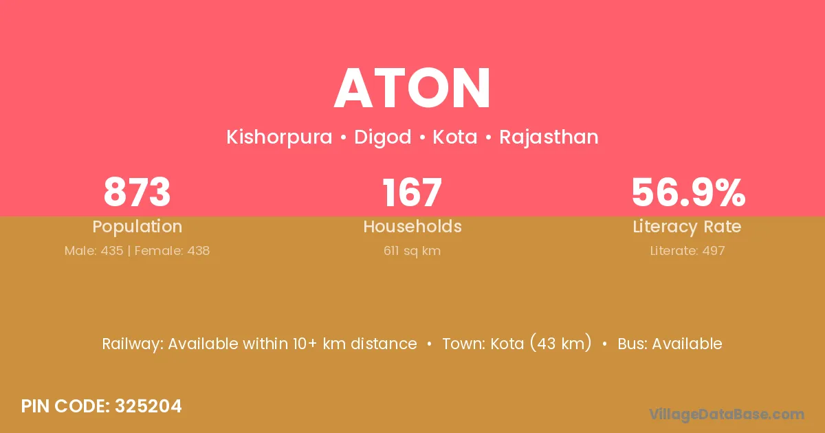 Kota (43 km) is the nearest town to Aton village for major economic activities and is located approximately 43 km away.