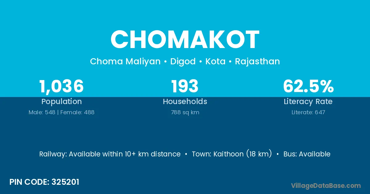 According to Census 2011 information, the village code of Chomakot village is 325201.