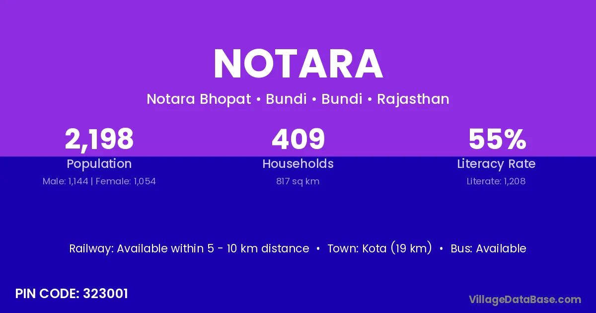 Antah (42 km) is the nearest town to Notara village for major economic activities and is located approximately 42 km away.