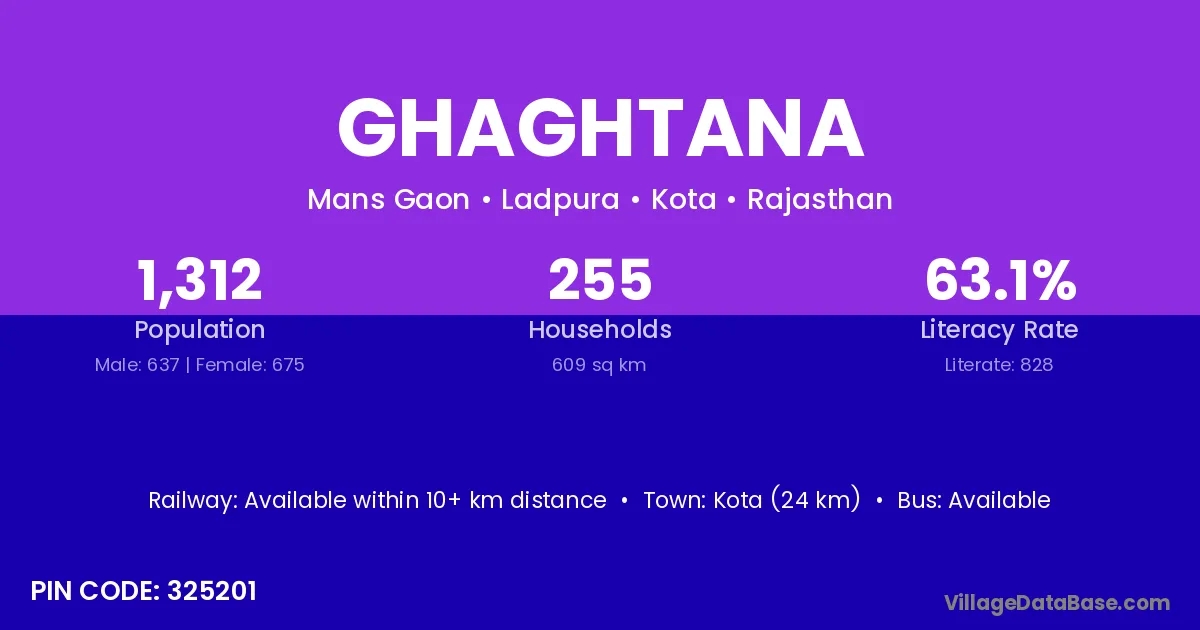 Kota (24 km) is the nearest town to Ghaghtana village for major economic activities and is located approximately 24 km away.