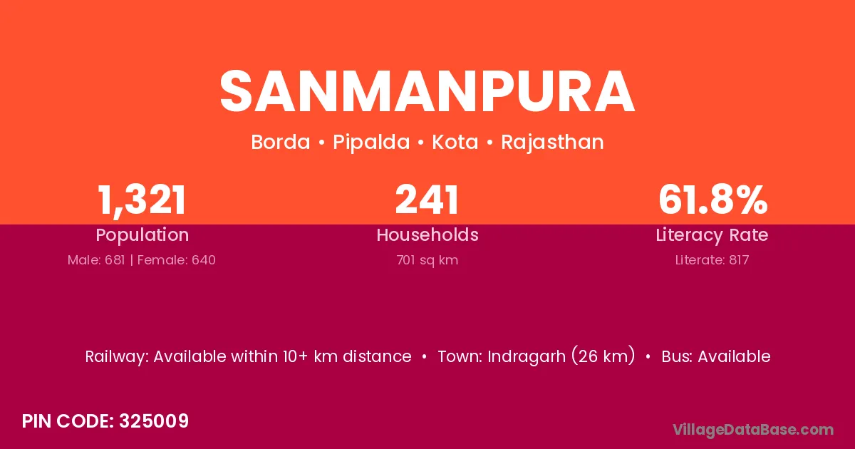 Sanmanpura village has a total population of 1,321 people, of which 681 are males and 640 are females.