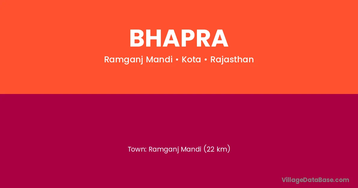 Ramganj Mandi (22 km) is the nearest town to Bhapra village for major economic activities and is located approximately 22 km away.
