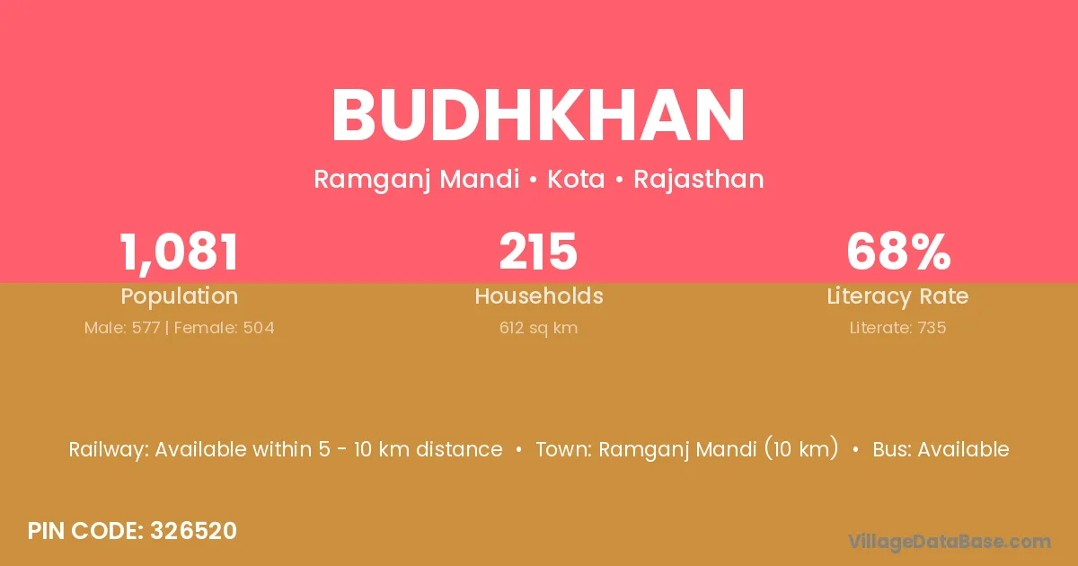 Ramganj Mandi (10 km) is the nearest town to Budhkhan village for major economic activities and is located approximately 10 km away.