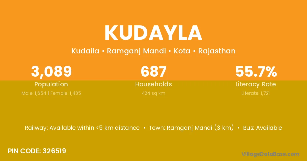 Ramganj Mandi (3 km) is the nearest town to Kudayla village for major economic activities and is located approximately 3 km away.