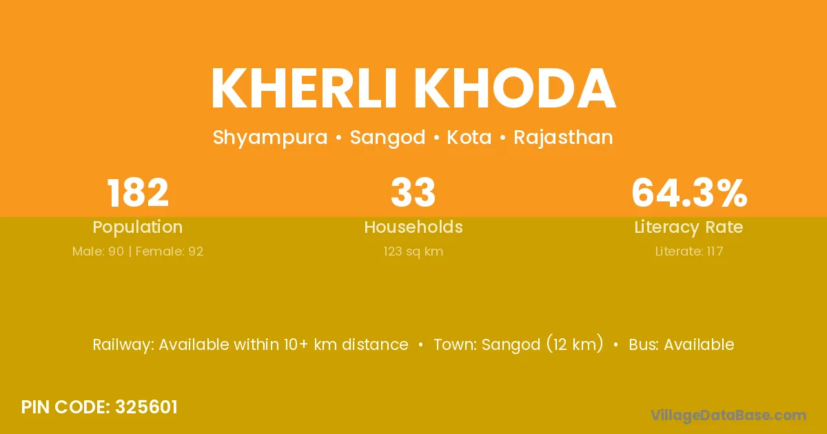 Sangod (12 km) is the nearest town to Kherli Khoda village for major economic activities and is located approximately 12 km away.