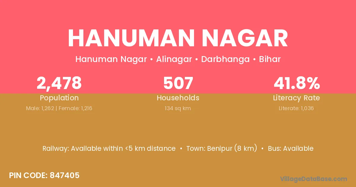 The literacy rate of Hanuman Nagar village is 42.55%. Male literacy stands at 51.20% and female literacy at 34.11%.
