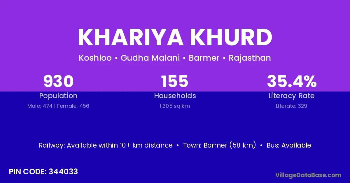 Nagaur (67 km) is the nearest town to Khariya Khurd village for major economic activities and is located approximately 67 km away.
