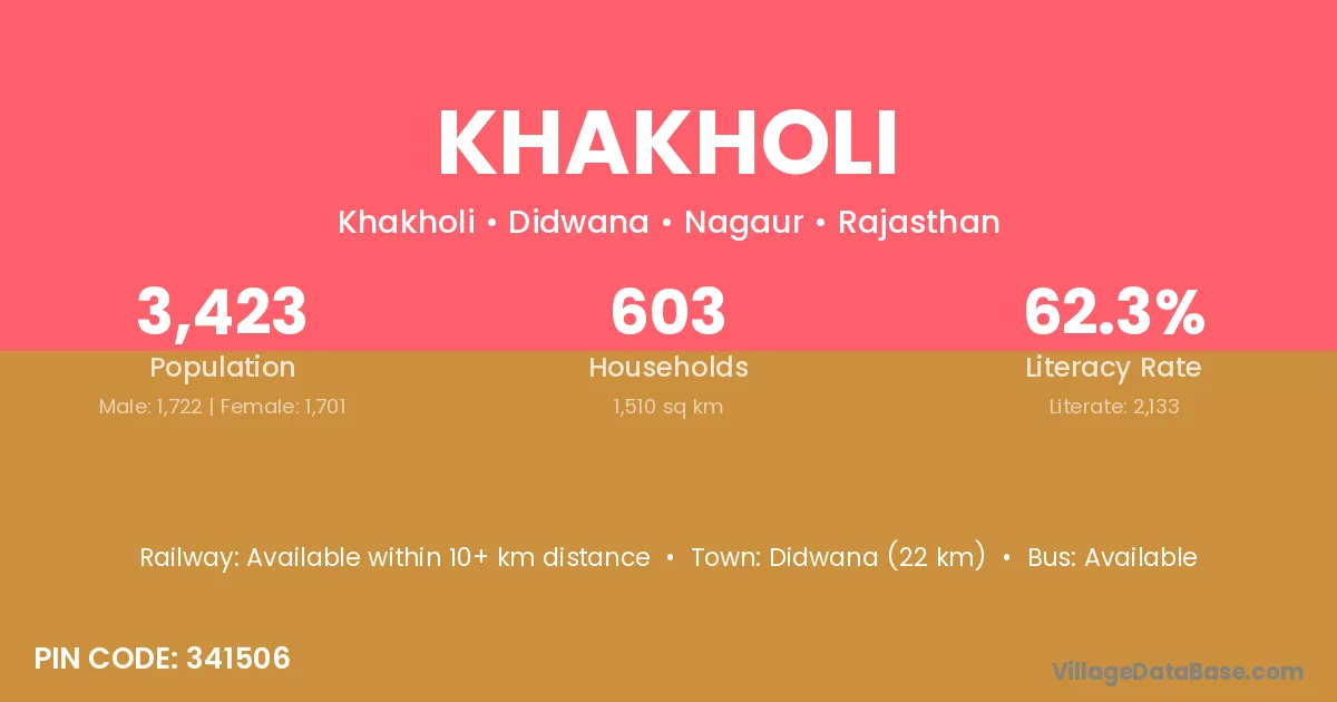 Didwana (22 km) is the nearest town to Khakholi village for major economic activities and is located approximately 22 km away.