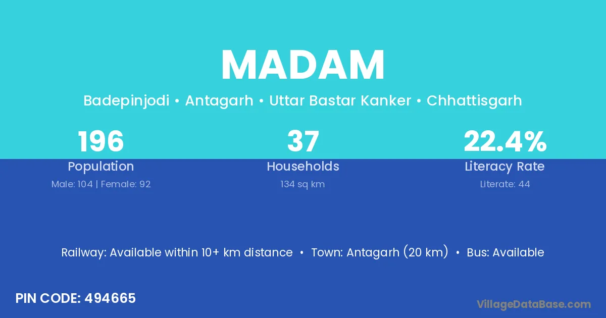 Didwana (15 km) is the nearest town to Madam village for major economic activities and is located approximately 15 km away.
