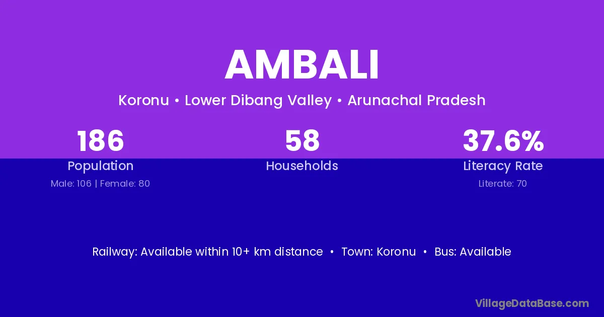 Ambali village has a total population of 650 people, of which 297 are males and 353 are females.