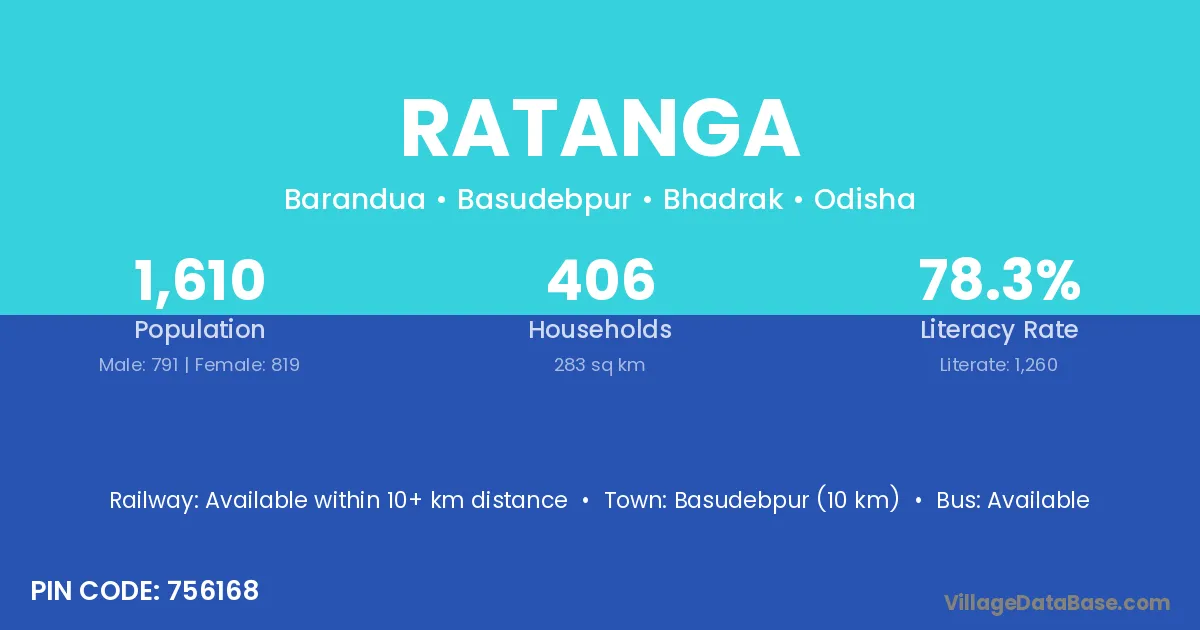 Ratanga village has a total population of 2,747 people, of which 1,420 are males and 1,327 are females.
