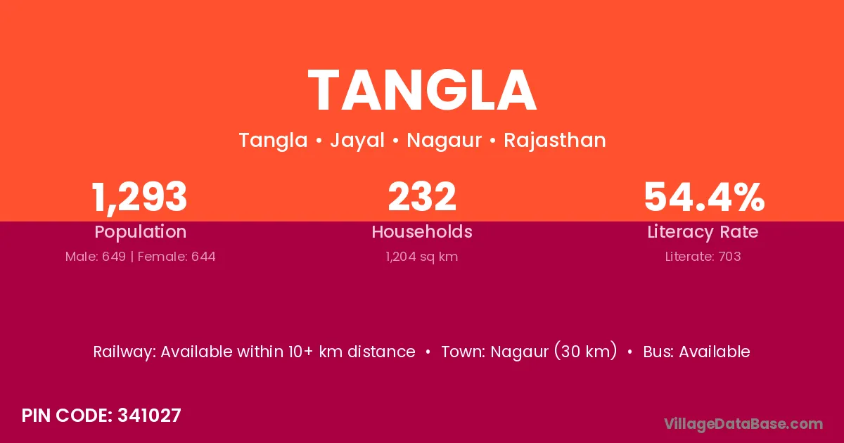 Nagaur (30 km) is the nearest town to Tangla village for major economic activities and is located approximately 30 km away.