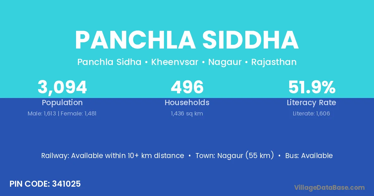 Nagaur (55 km) is the nearest town to Panchla Siddha village for major economic activities and is located approximately 55 km away.