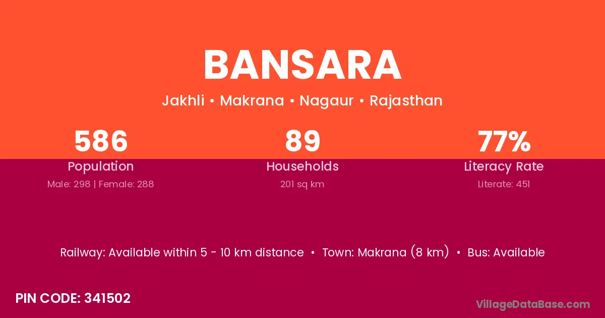 Makrana (8 km) is the nearest town to Bansara village for major economic activities and is located approximately 8 km away.