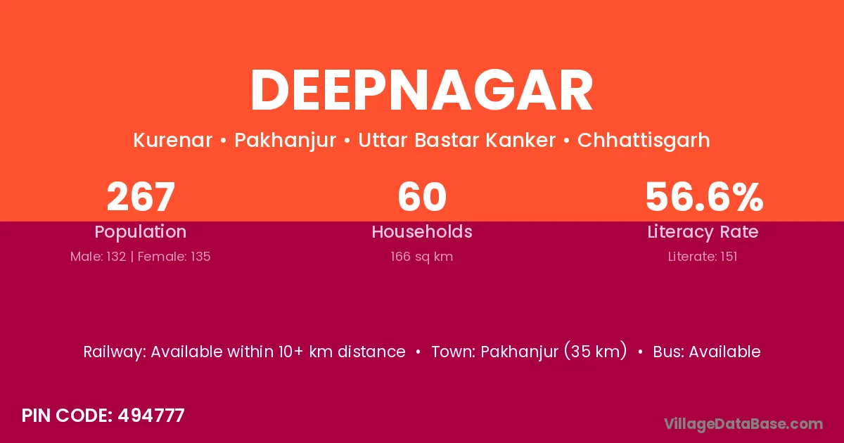 Deepnagar village has a total population of 312 people, of which 152 are males and 160 are females.