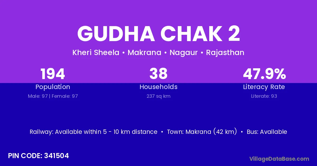 Makrana (42 km) is the nearest town to Gudha Chak 2 village for major economic activities and is located approximately 42 km away.