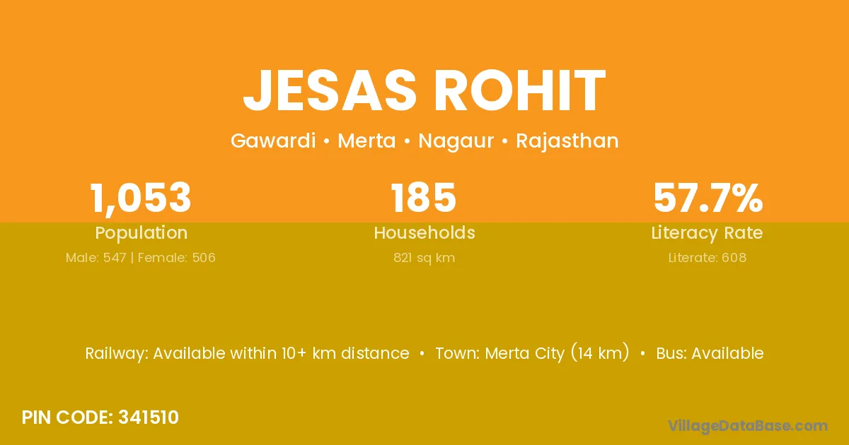 Jesas Rohit village has a total population of 1,053 people, of which 547 are males and 506 are females.