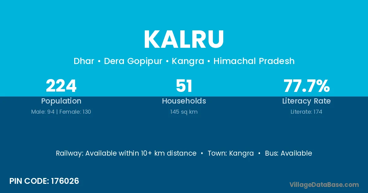 Kalru village has a total population of 2,534 people, of which 1,288 are males and 1,246 are females.