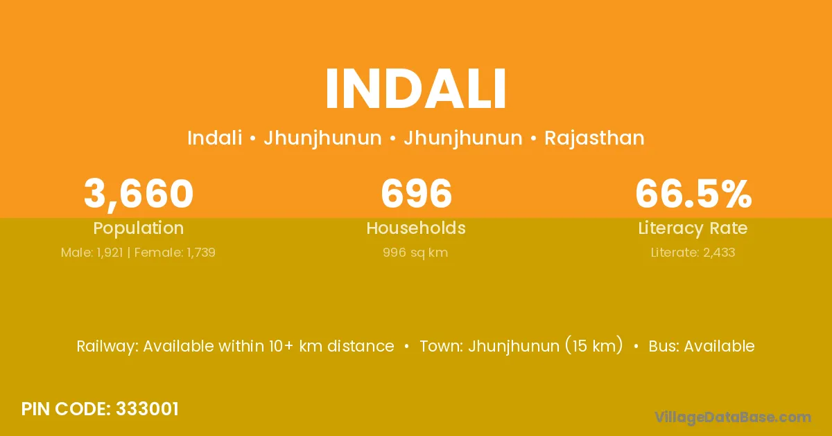 Kuchaman City (17 km) is the nearest town to Indali village for major economic activities and is located approximately 17 km away.