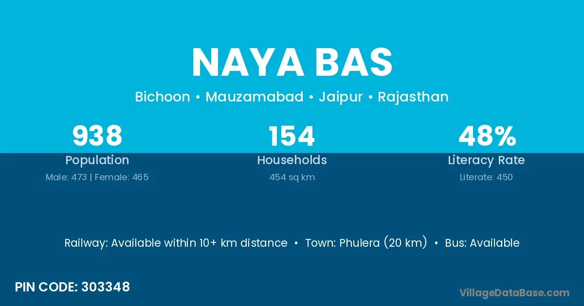 Nawa (40 km) is the nearest town to Naya Bas village for major economic activities and is located approximately 40 km away.