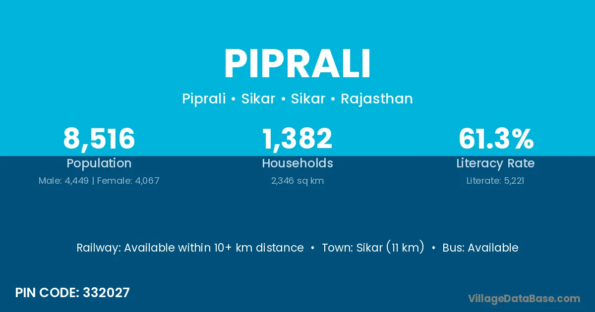 Nawa (20 km) is the nearest town to Piprali village for major economic activities and is located approximately 20 km away.