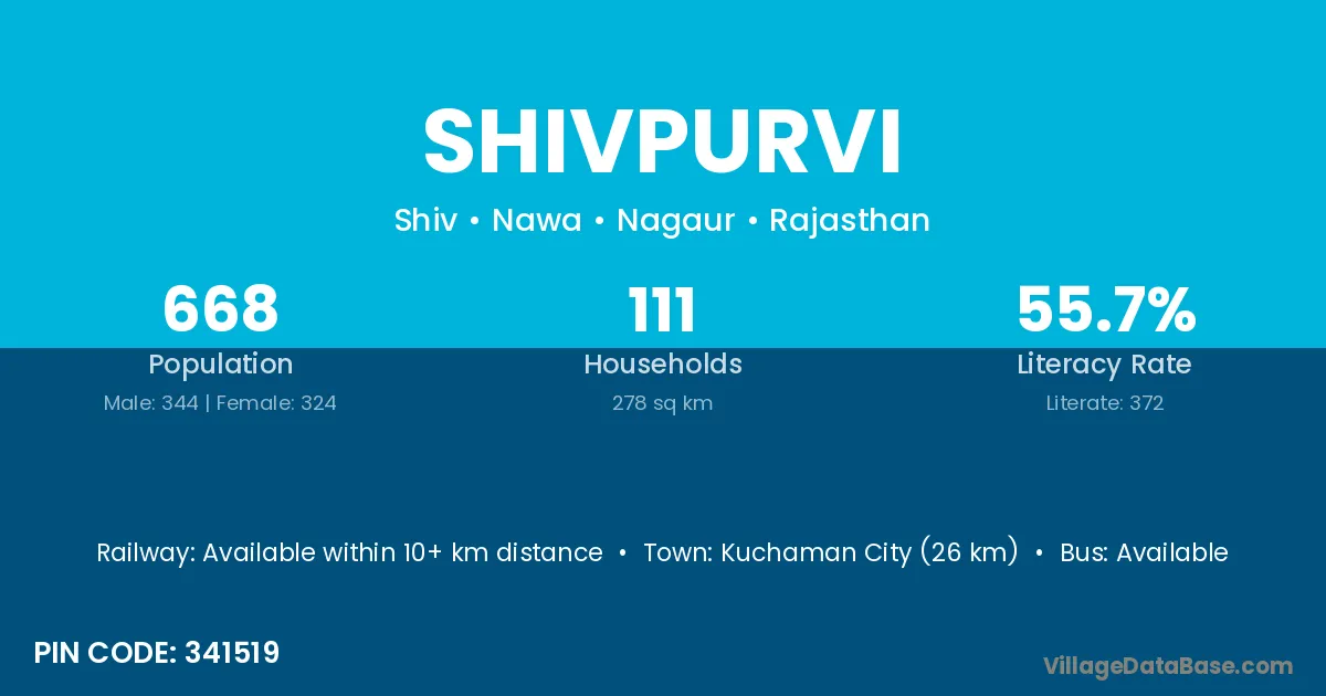 Kuchaman City (26 km) is the nearest town to Shivpurvi village for major economic activities and is located approximately 26 km away.