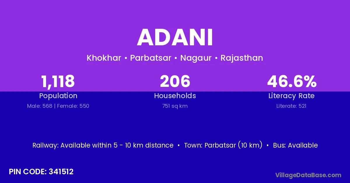 Parbatsar (10 km) is the nearest town to Adani village for major economic activities and is located approximately 10 km away.