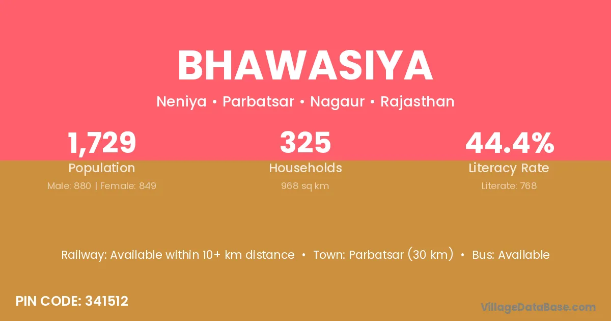 Parbatsar (30 km) is the nearest town to Bhawasiya village for major economic activities and is located approximately 30 km away.