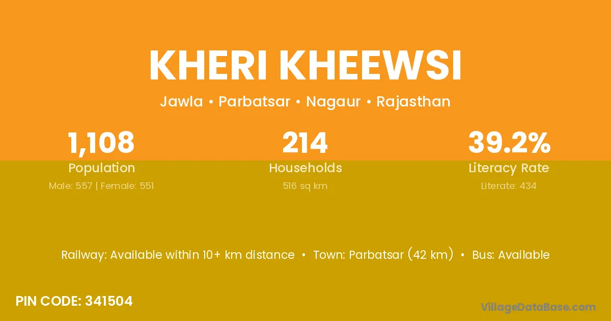 Parbatsar (42 km) is the nearest town to Kheri Kheewsi village for major economic activities and is located approximately 42 km away.