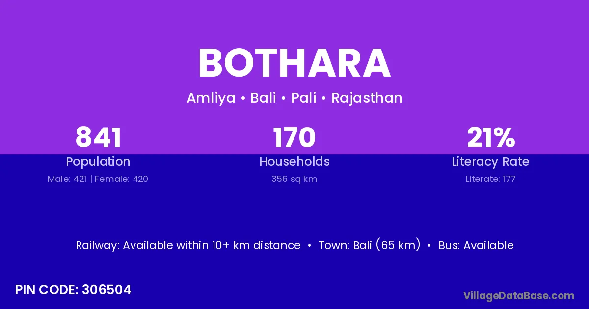 Bali (65 km) is the nearest town to Bothara village for major economic activities and is located approximately 65 km away.