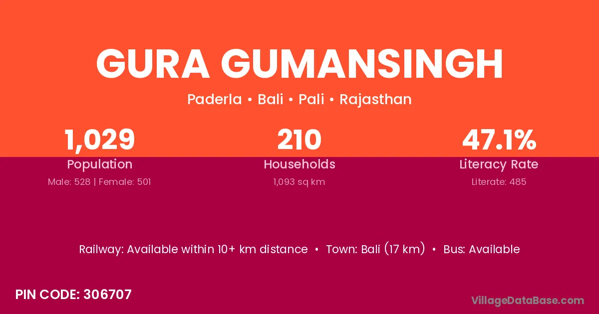 Gura Gumansingh village has a total population of 1,029 people, of which 528 are males and 501 are females.