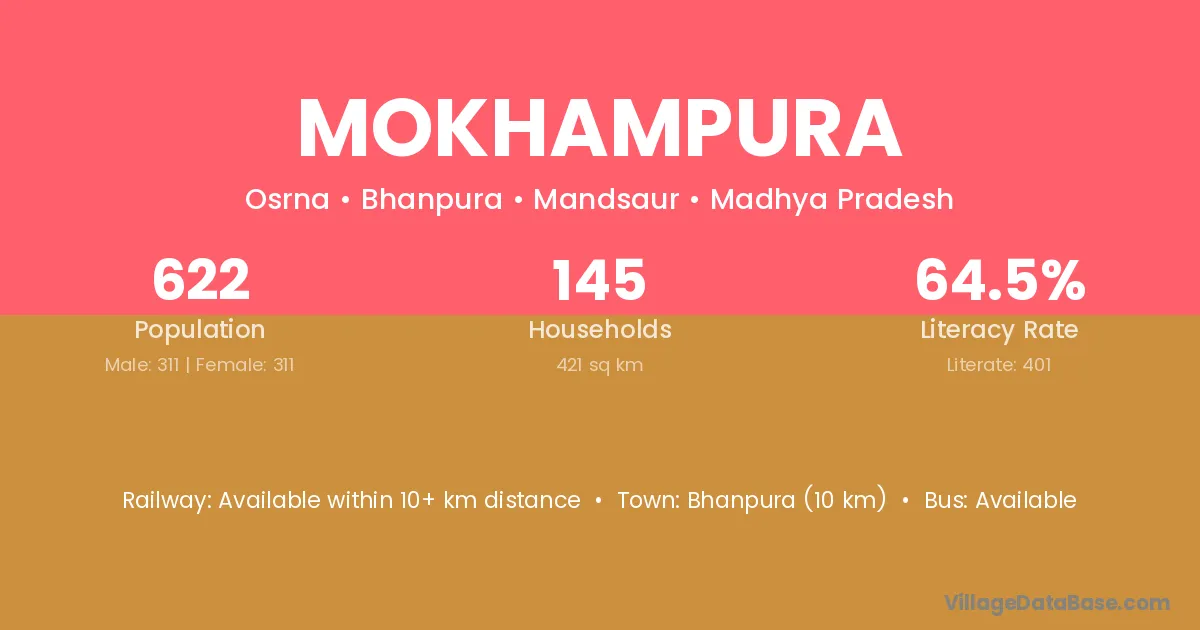 According to Census 2011 information, the village code of Mokhampura village is 306115.